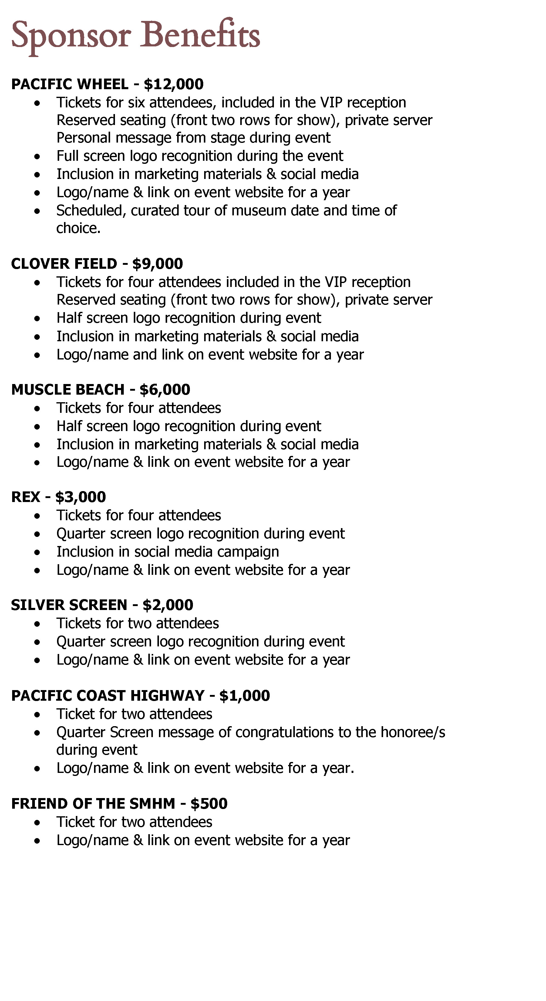 There are many benefits to sponsoring the Santa Monica History Museum's Stand Ups for History event. Benefits for sponsors are listed below. If you have any questions or are interested in becoming a sponsor please call us at 310-923-0124 or email development@santamonicahistory.org.